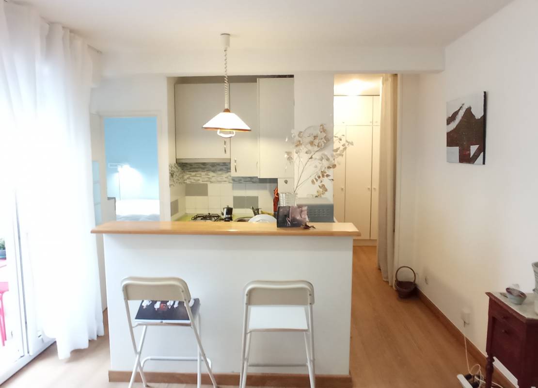 Descriptif: Situé au cœur de la ville en face de la médiathèque dans une résidence avec ascenseur, cet appartement est disposé en duplex avec une pièce de vie et kitchenette donnant sur un balcon et une chambre. A l´étage, il dispose d'une grande alcôve avec une jolie mezzanine sous deux velux. vue Montagne. Un parking est proposé en option