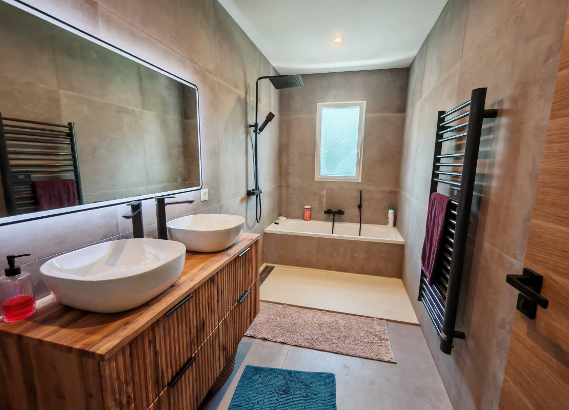 Descriptif: A proximité du Bourg de Biriatou, maison neuve de 2023 de type 5 pièces d'une surface de 150m2 avec sous sol complet et terrain piscinable de 2000m2. Séjour avec cuisine américaine de 54m2 donnant sur terrasse plein Sud , 4 chambres, 1 salle d'eau, 1 salle de bains