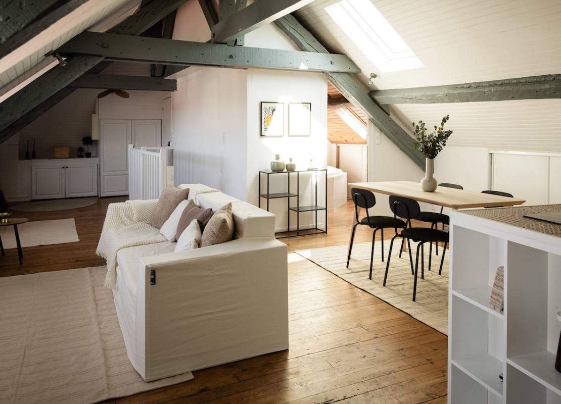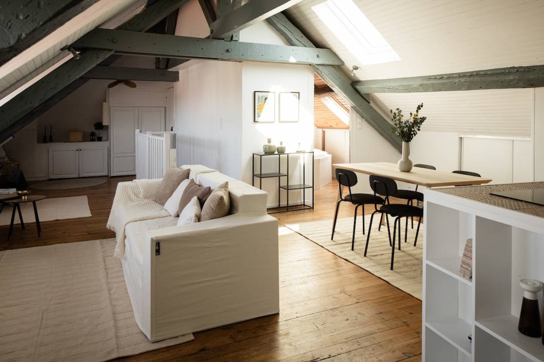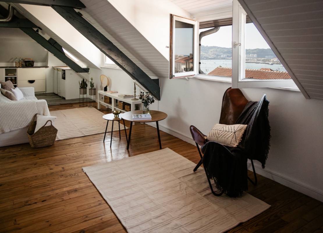 En plein cœur d'Hendaye, ce duplex inversé, situé au dernier étage d'un immeuble historique, offre une vue imprenable sur la baie de Txingudi et Hondarribia.